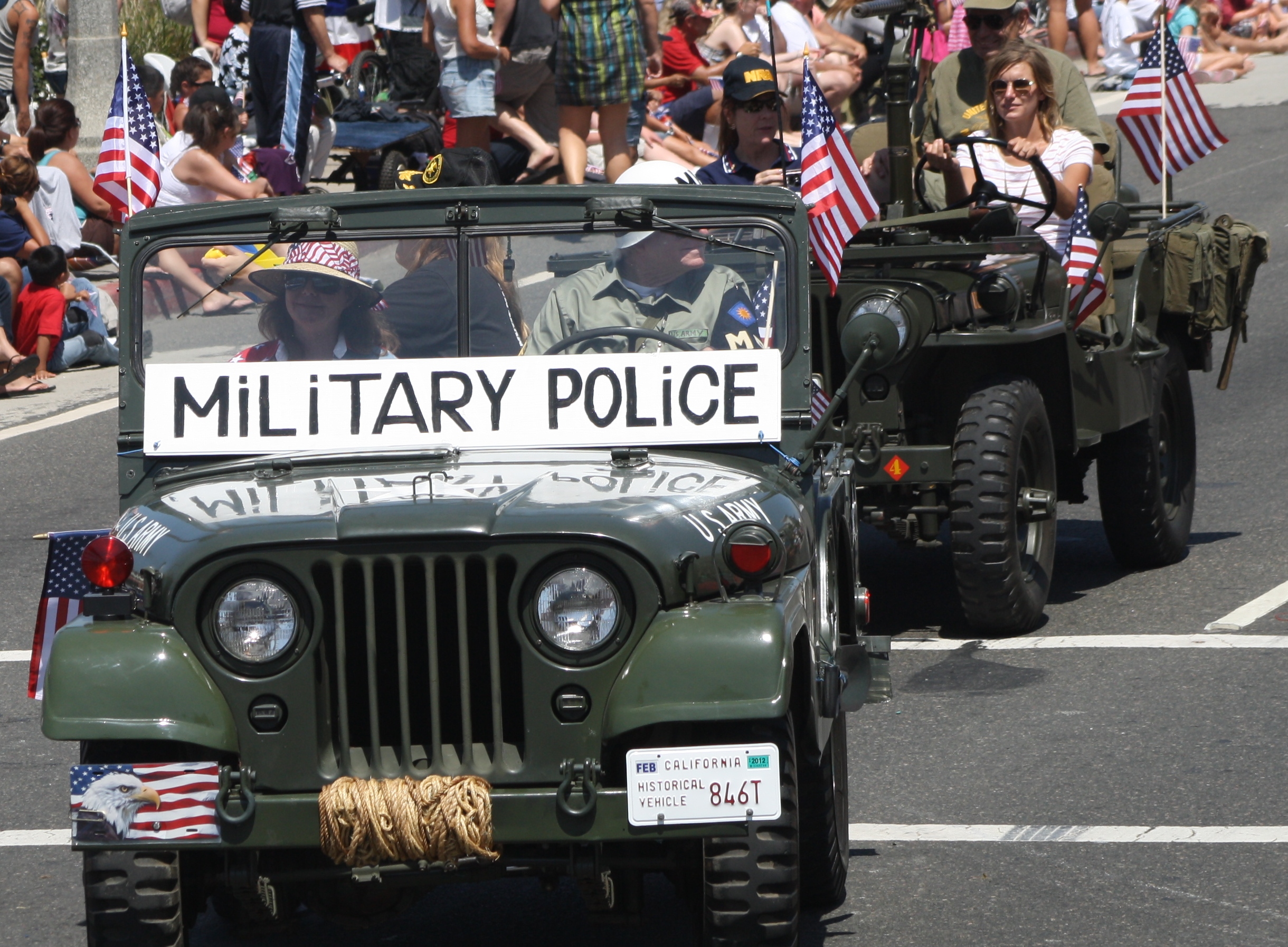 Huntington Beach 4th of July Parade, Huntington Beach, California. Participants in vintage military jeeps at the Huntington Beach Parade.