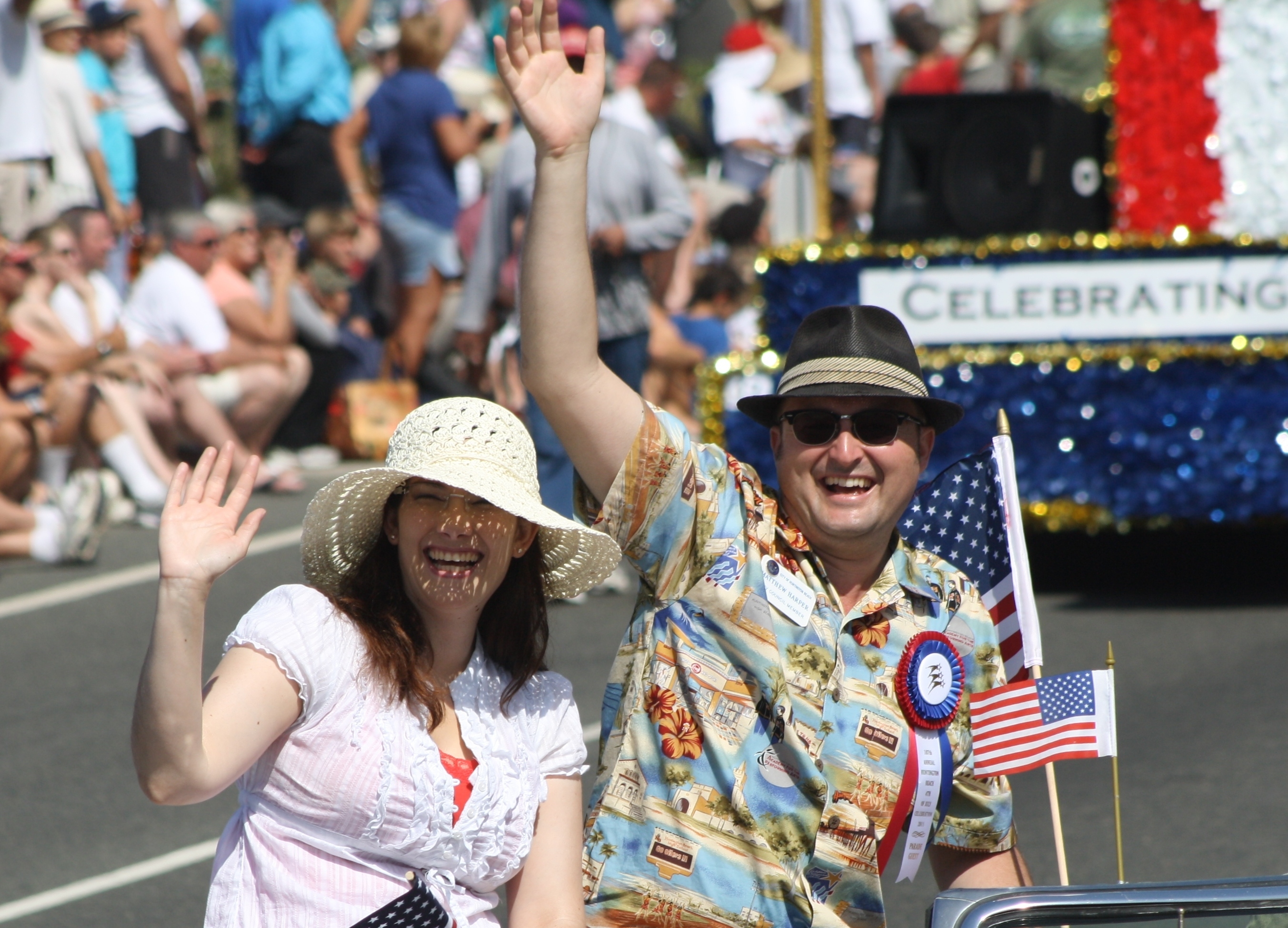 Хънтингтън Бийч 4 юли парад, Хънтингтън Бийч, Калифорния. Хънтингтън Бийч, общински Съвет-членовете на Матю Харпър в морския парад на Хънтингтън. Снимка Едуард Pinchiff.
