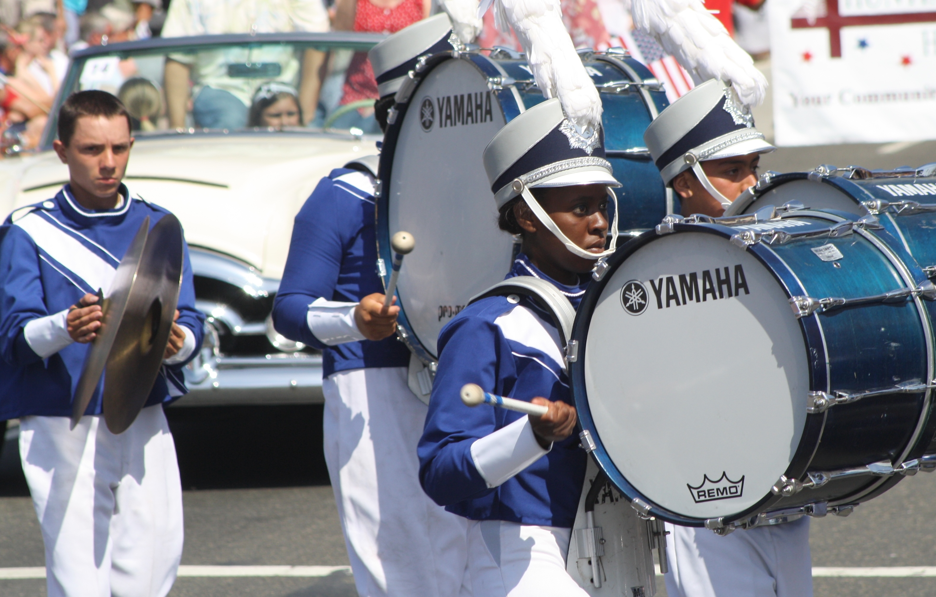 Huntington Beach 4 de julio Desfile, Huntington Beach, California. Una banda de música realiza para los espectadores en Huntington Beach Parade.