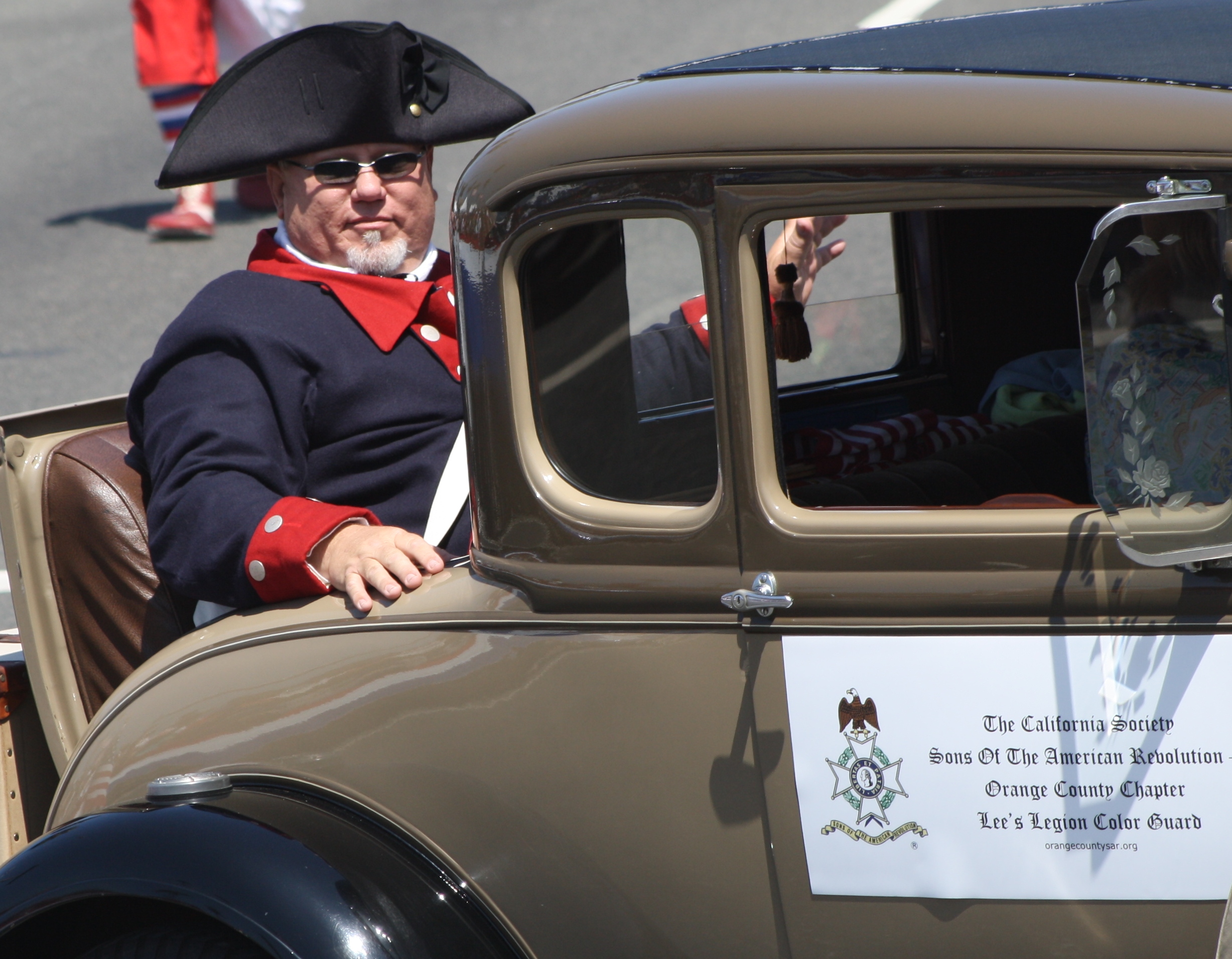 Huntington Beach 4th of July Parade, Huntington Beach, California. Peserta yang berasal dari Orange County, anak-Anak Revolusi Amerika dengan antik kolonial kostum dan mobil vintage di Huntington Beach Parade.