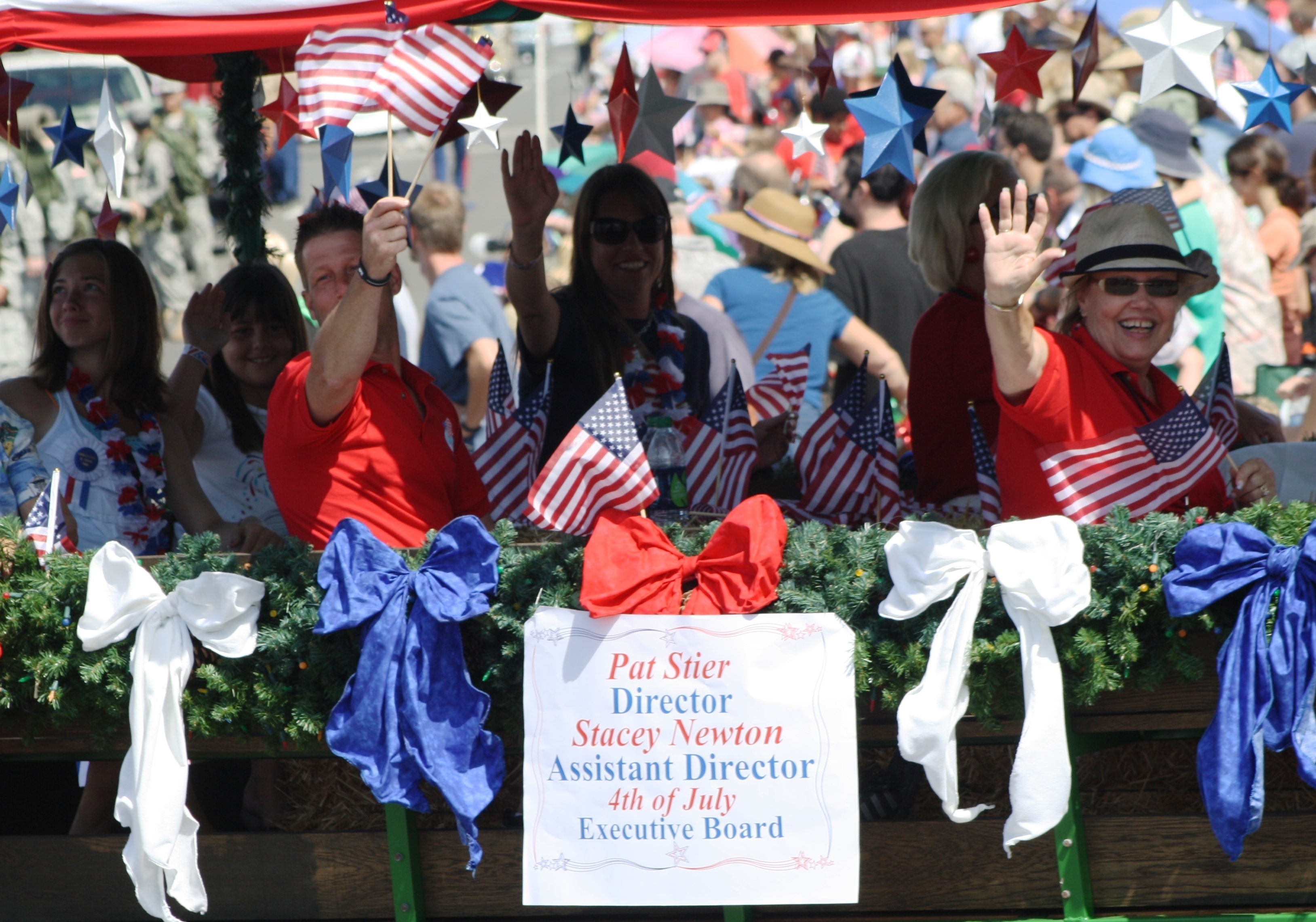 Хантингтон-Бич 4 июля парад, Хантингтон-Бич, Калифорния. ПЭТ директор Штир, Стэйси Ньютон помощник директора, и правления пляжа парад Хантингтон.